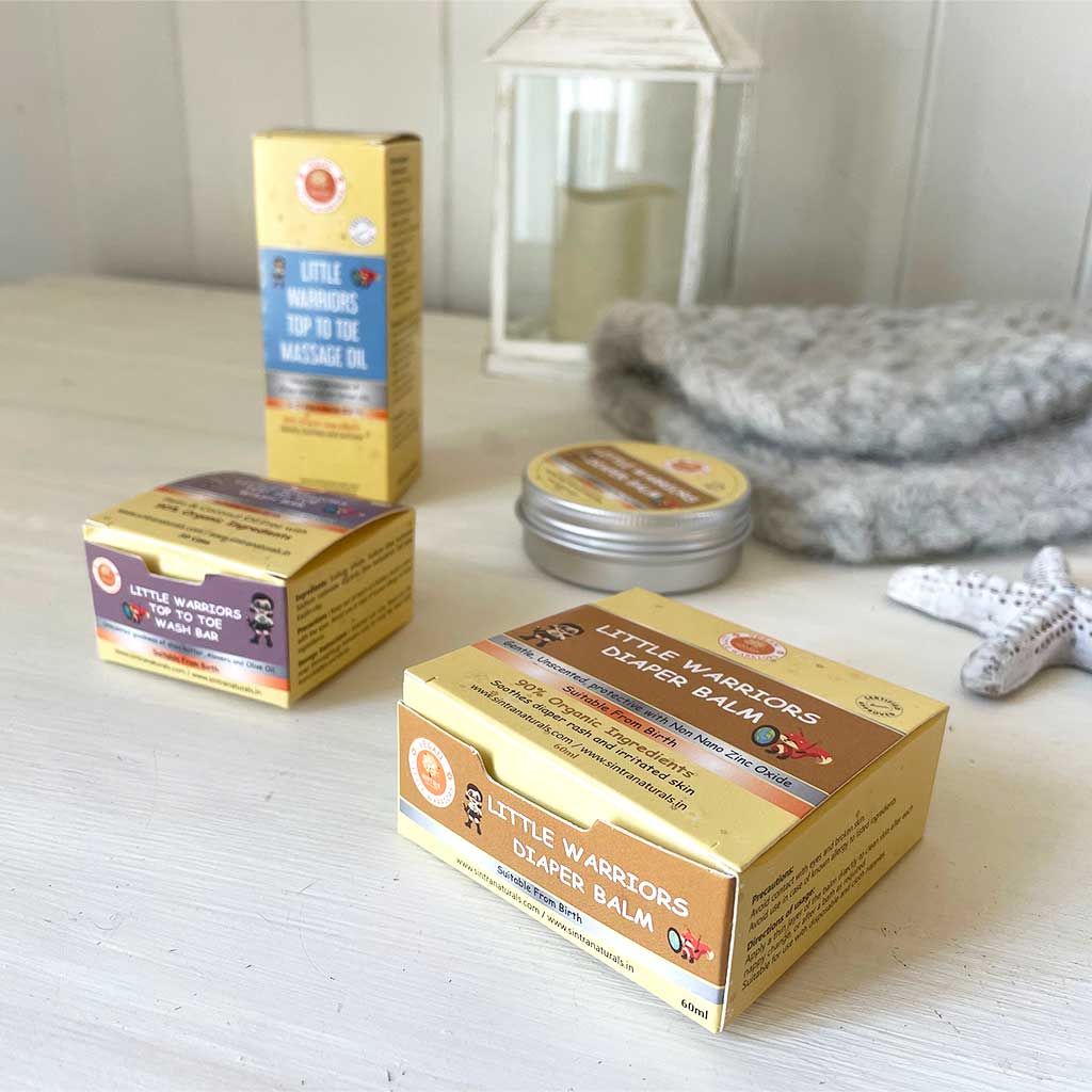 Little Warriors Diaper Balm does not contain essential oils, fragrances, or any kind of skin irritants. Designed to prevent nappy rash and minor skin irritations, this natural balm is made using pure virgin olive oil, non-nano zinc oxide and non-greasy mango butter to keep the skin supple and help it to regenerate quickly.
